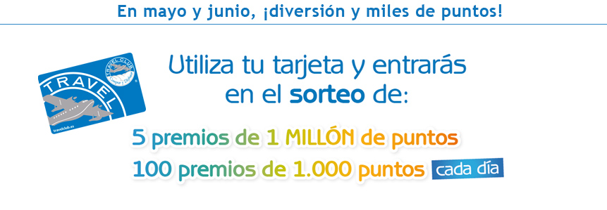5 premios de 1.000.000 de puntos por utilizar tu tarjeta. ¡Y 100 premios de 1.000 puntos cada día!