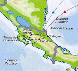 Día 4º: Tortuguero - Arenal: Desayuno en el hotel. Salida hacia Guápiles. Nuevamente abordaremos una lancha para seguir admirando la variedad de fauna y flora a lo largo de los Canales y ríos del Parque Nacional. Llegada a Guápiles. Almuerzo. Traslado hasta Arenal. El recorrido nos permitirá explorar la región de San Carlos con fértiles plantaciones. Llegada a la zona de Arenal famosa por sus paisajes siempre verdes, su imponente volcán y sus rejuvenecedoras aguas termales que nacen al pie del mismo. Llegada y alojamiento en el hotel seleccionado.
