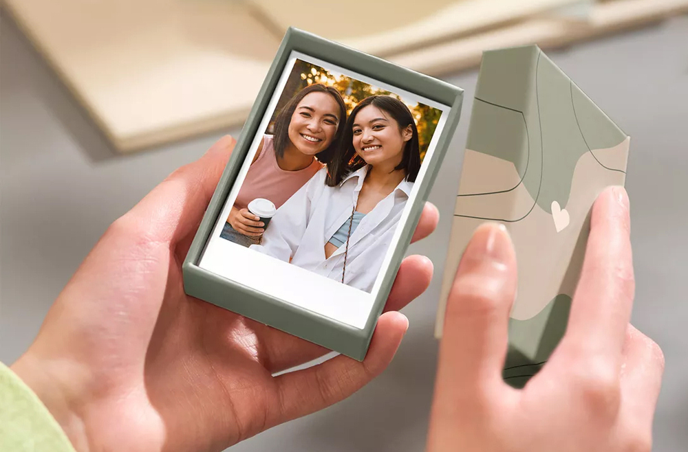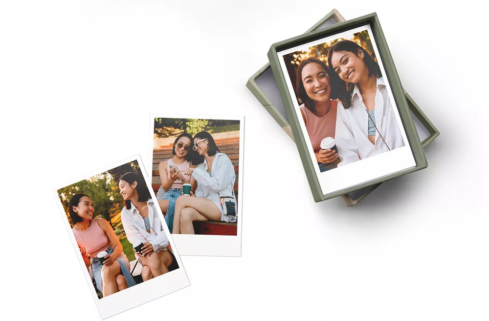 Un formato mini y práctico para imprimir tus momentos favoritos. Ideal como pequeño regalo para tus seres queridos. Con una preciosa caja para guardarlos. Papel fotográfico mate o brillante y personalizable 100%.