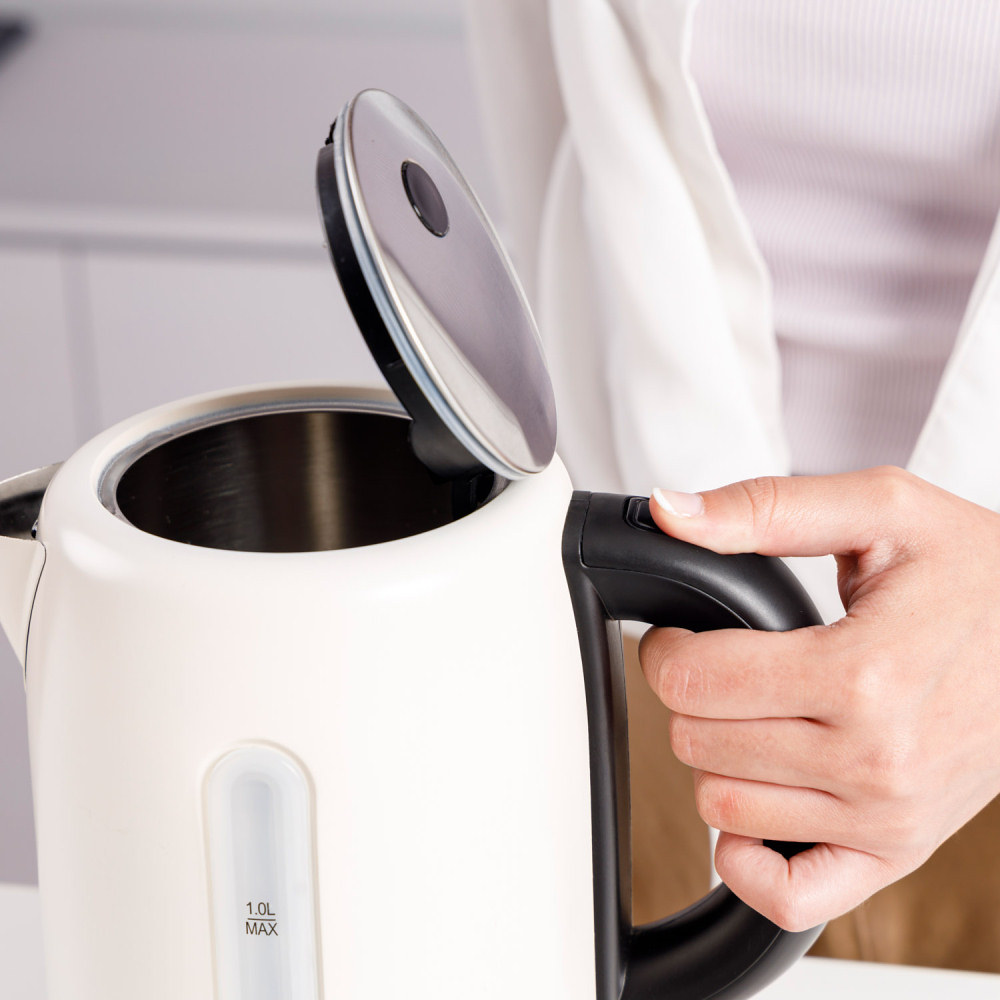 El hervidor de agua Vintage Compact Cream de Taurus con 2400W de potencia y 1L de capacidad garantiza un calentamiento rápido y eficiente.