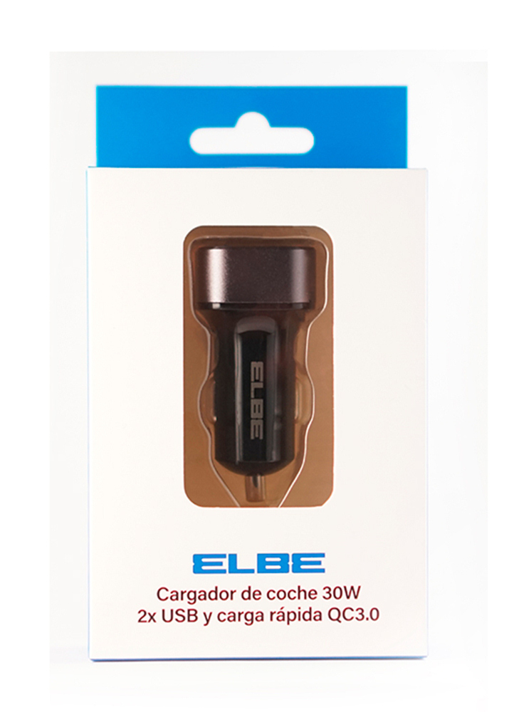 El cargador de coche CARG-301-QC de ELBE es el producto ideal para cargar sus dispositivos con total seguridad. Al ser compatible con la carga rápida QC 3.0, el tiempo necesario para cargar al 100% sus dispositivos, será mucho menor y en un corto viaje en coche puede tener cargado su móvil casi completamente. Puede usarlo para cargar móviles, tablets, altavoces y auriculares bluetooth, powerbanks, pulseras y relojes inteligentes, así como dispositivos Apple ya que es compatible con Apple 2.4A. Marco con iluminación LED blanca para poder verlo en situaciones de poca luz.