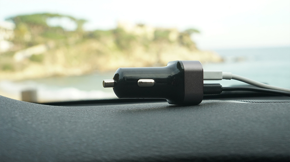 Cargador coche usb negro doble puerto carga rápida ELBE