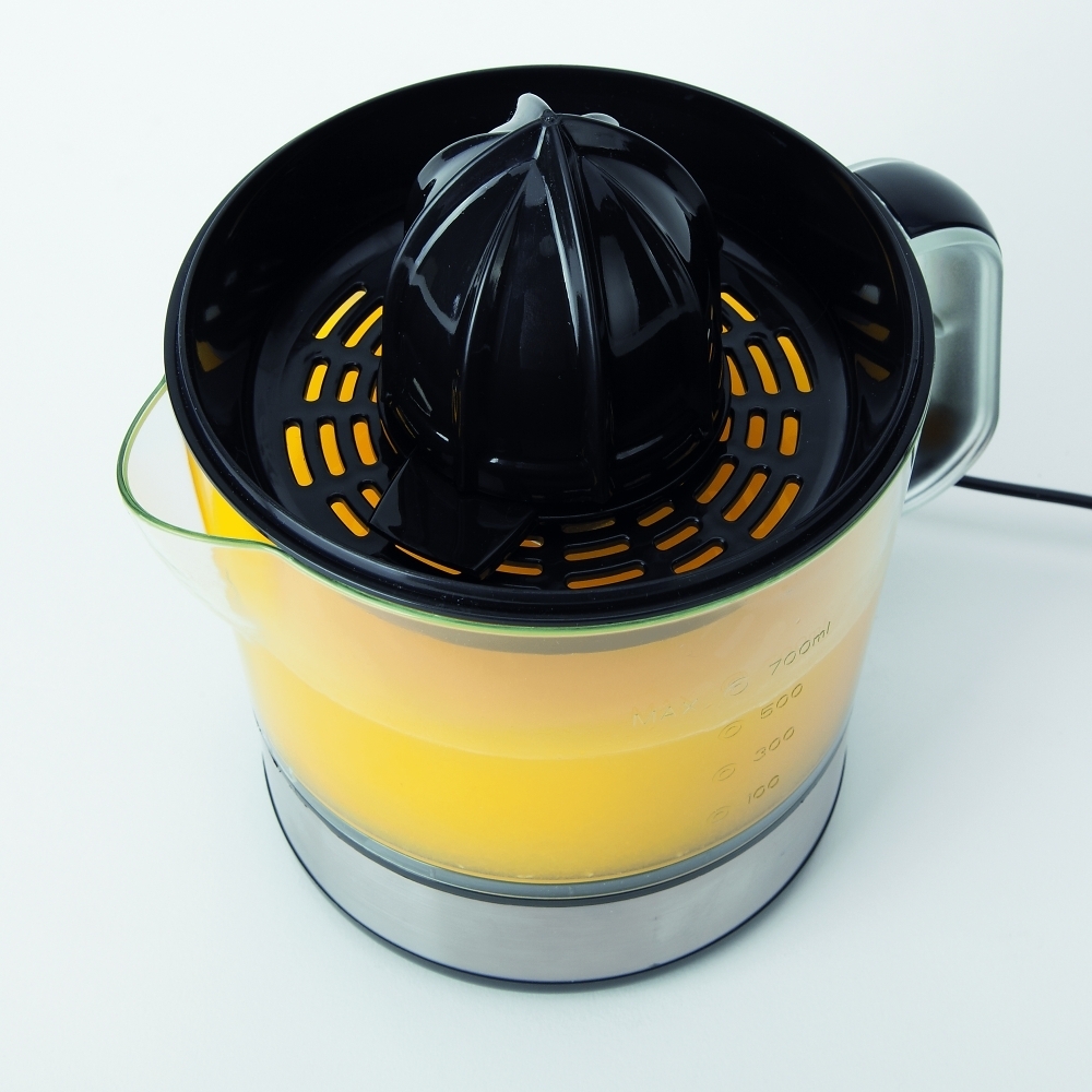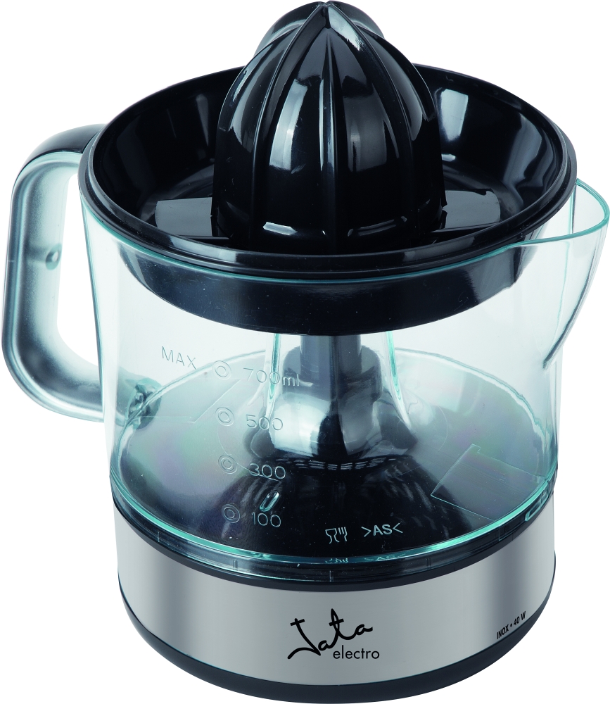 Capacidad 700 ml. Rotación bidireccional. Incorpora dos conos para conseguir la máxima eficacia: -Cono grande: naranjas, pomelos, etc. -Cono pequeño: limones, mandarinas, etc. Cuerpo en acero inoxidable. Depósito con asa. Desmontable para su fácil limpieza. Tapa transparente. Base antideslizante. Voltaje 230 V. Potencia 40 W.