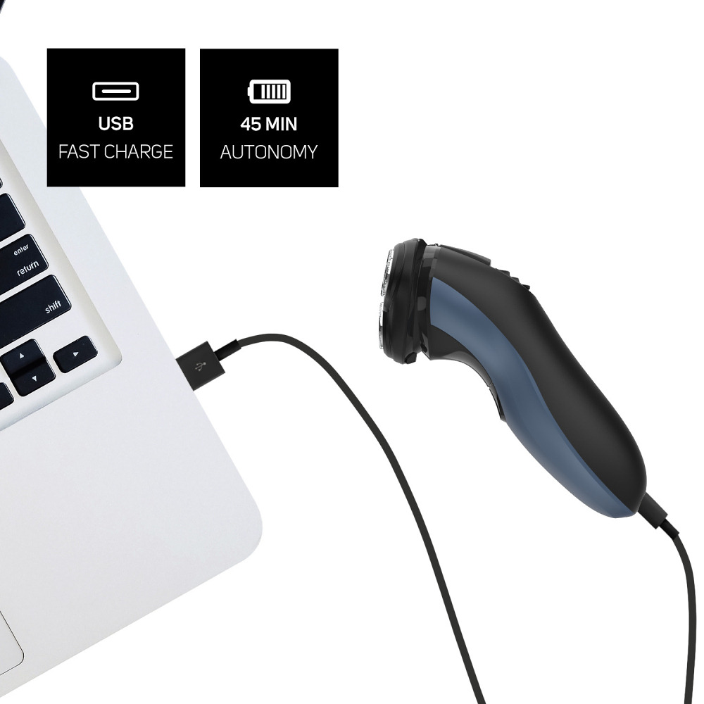 desplegable, autonomía de 45 minutos, carga USB y diseño ergonómico, ofrece comodidad y precisión. Incluye cepillo de limpieza, tapa
