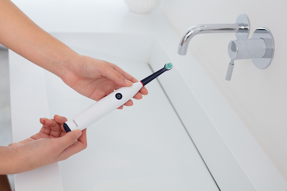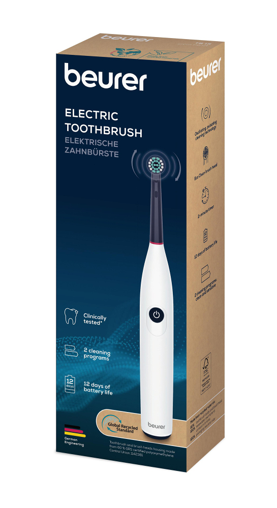 El cepillo de dientes eléctrico TB-15 de Beurer, ofrece una limpieza intensa con dos programas, uno de limpieza y otro para aquellas personas que tengan las encías más sensibles. El cepillo de dientes de Beurer utiliza una tecnología de limpieza oscilante y pulsátil que permite una alta potencia de limpieza. Los cabezales extraíbles del cepillo de dientes eléctrico se mueven rápidamente de un lado a otro, lo que permite eliminar con eficacia la placa y las bacterias. El movimiento pulsátil también estimula el flujo sanguíneo en las encías, lo que puede mejorar la circulación sanguínea y la higiene bucal. Incluye un temporizador de 2 minutos con vibración, para una limpieza perfecta. Además, tanto la carcasa del cepillo de dientes como los cabezales extraíbles están fabriado con materiales 60% reciclados.