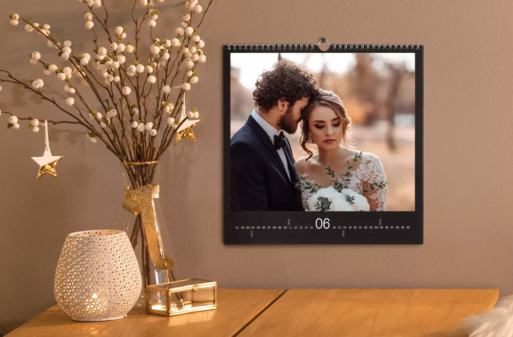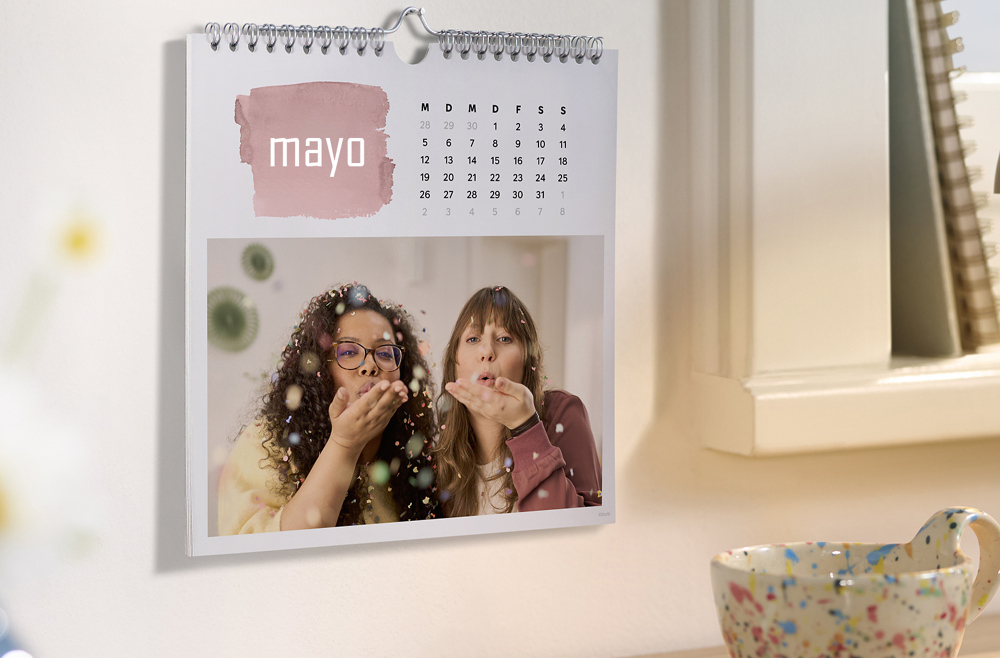 ¡No dejes pasar ni un día sin mirar tus fotos favoritas! El calendario de pared cuadrado con fotos queda perfecto en la pared del salón, el dormitorio o la cocina. Tamaño 21x21cm. Elección del mes de inicio
