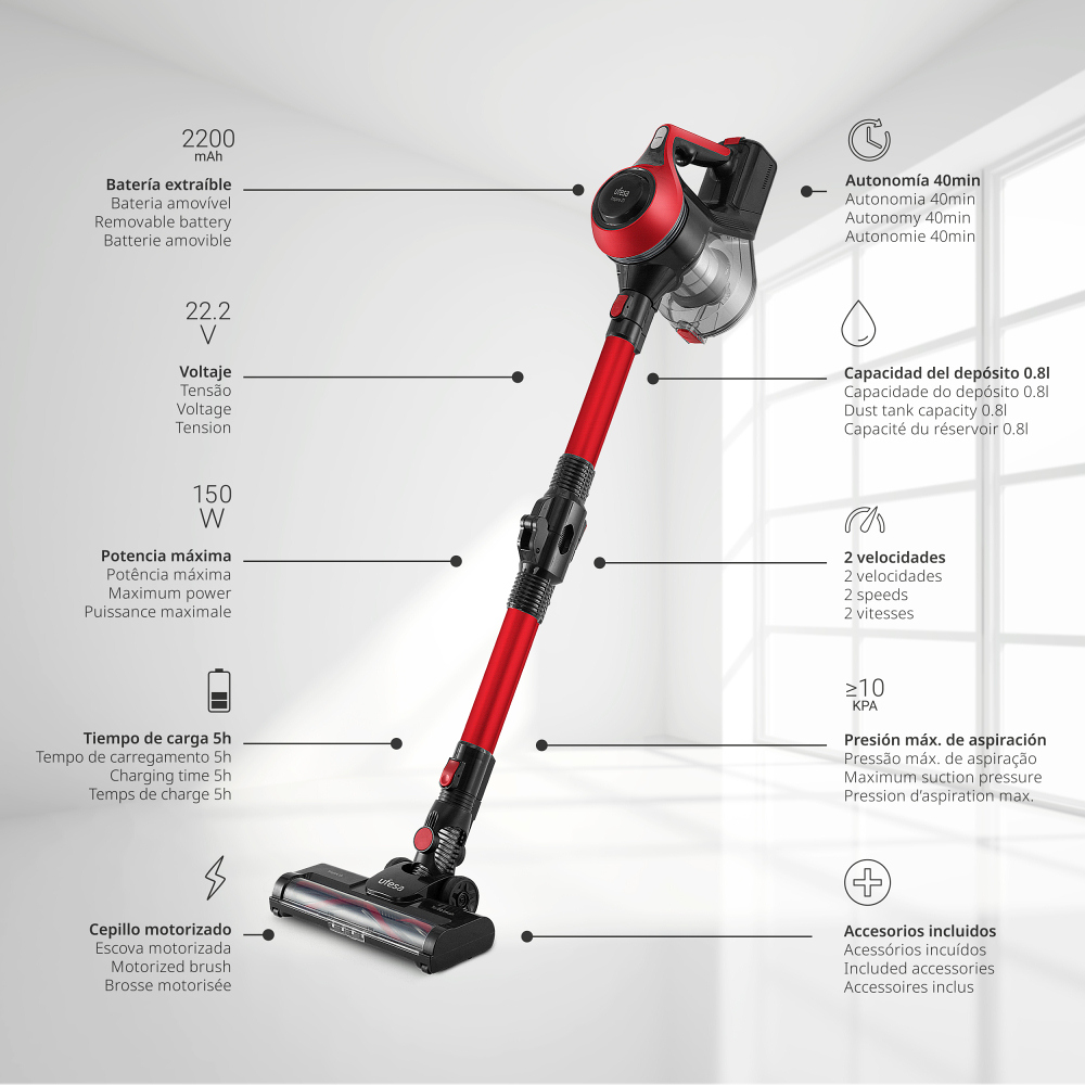 Aspirador de 22.2V y motor de 130W.
