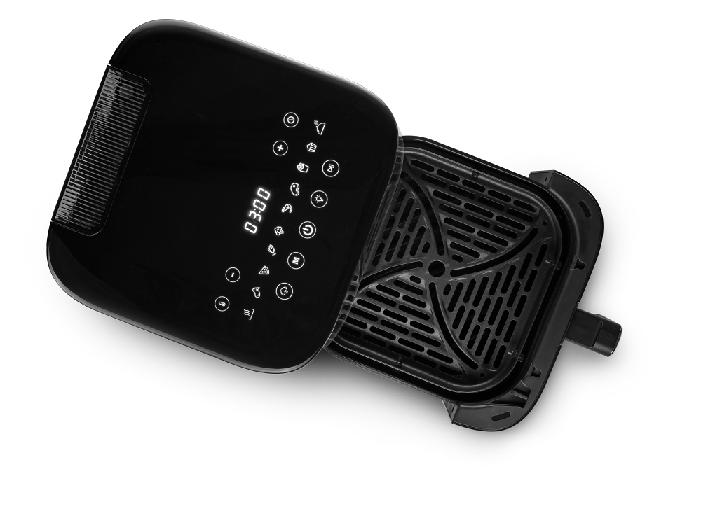 10 programas preestablecidos: precalentar, alitas de pollo, pizza, pescado, vegetales, marisco, carne, patatas fritas, hornear y mantener caliente.